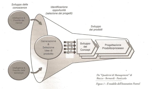 L’Innovation Funnel è uno strumento specifico dell’approccio Lean, che permette di definire in modo sintetico ed efficace le diverse fasi e le diverse decisioni chiave del processo di sviluppo dei nuovi prodotti e servizi.